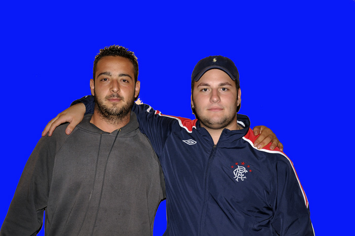 Antonio... fa un segno eloquente, se non dovesse comportarsi bene, a Mauro